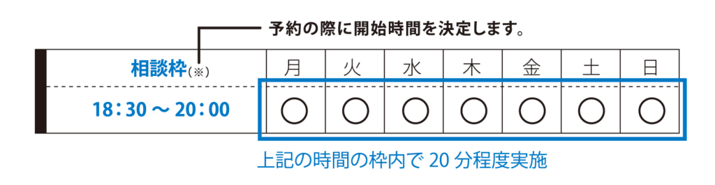 お1人様20分程度無料で相談できる機会を初回にご用意しました。志望校の対策に必要な授業のご案内や対策に必要な道具の説明などを行います。現在の状況やお困りの点、オンライン授業の不明点なども解消してから受講をご検討ください。※通信テストも兼ねています。