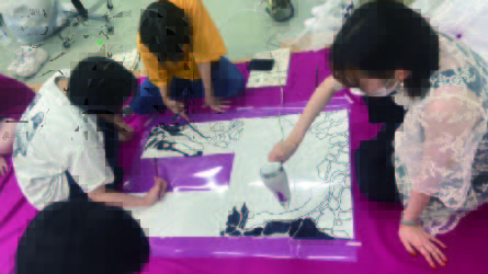 一年生は藝祭で神輿と法被を制作。写真は法被のシルクスクリーンの版をみんなで手書きで書いています - 藝大のランチ事情を教えてください