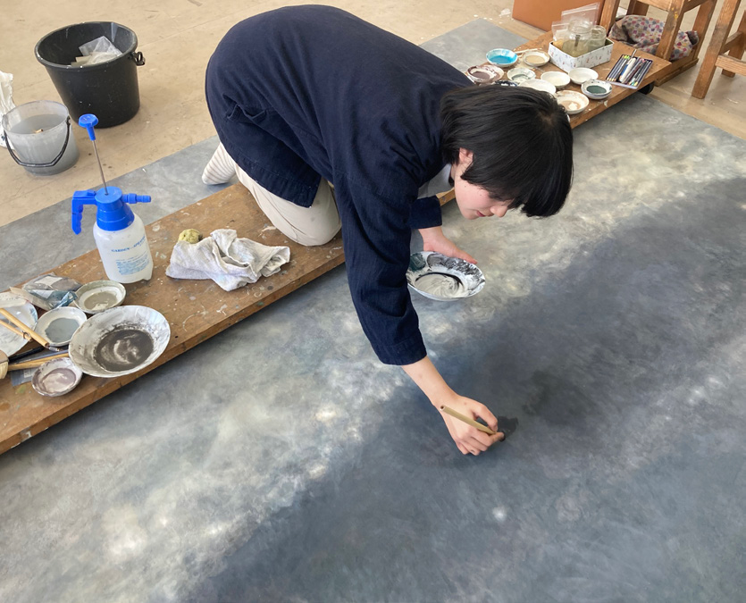 周りの人たちの熱量、圧倒的な行動力、そしてレベルの高さです。同じ日本画の学生同士で話していても「うわぁ、そんなことまで考えているんだな!」と刺激をもらうことが本当に多いです。藝大は音楽学部もあるので、様々な分野の人と芸術について熱く語り合うことができます!ハッとする言葉、作品を通じて与えてくれる未知の感覚。周りの人がくれる刺激は計り知れません。