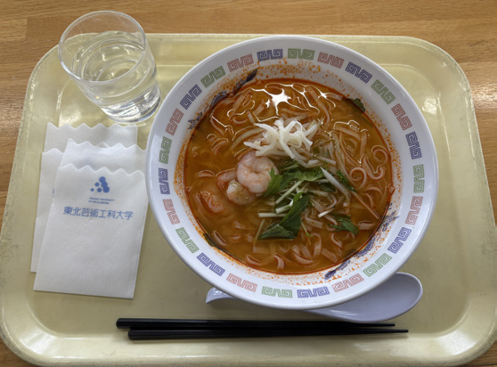 学食の日替わり定食。この日はトムヤムフォーでした。癖になるピリ辛! - 大学の学びについて