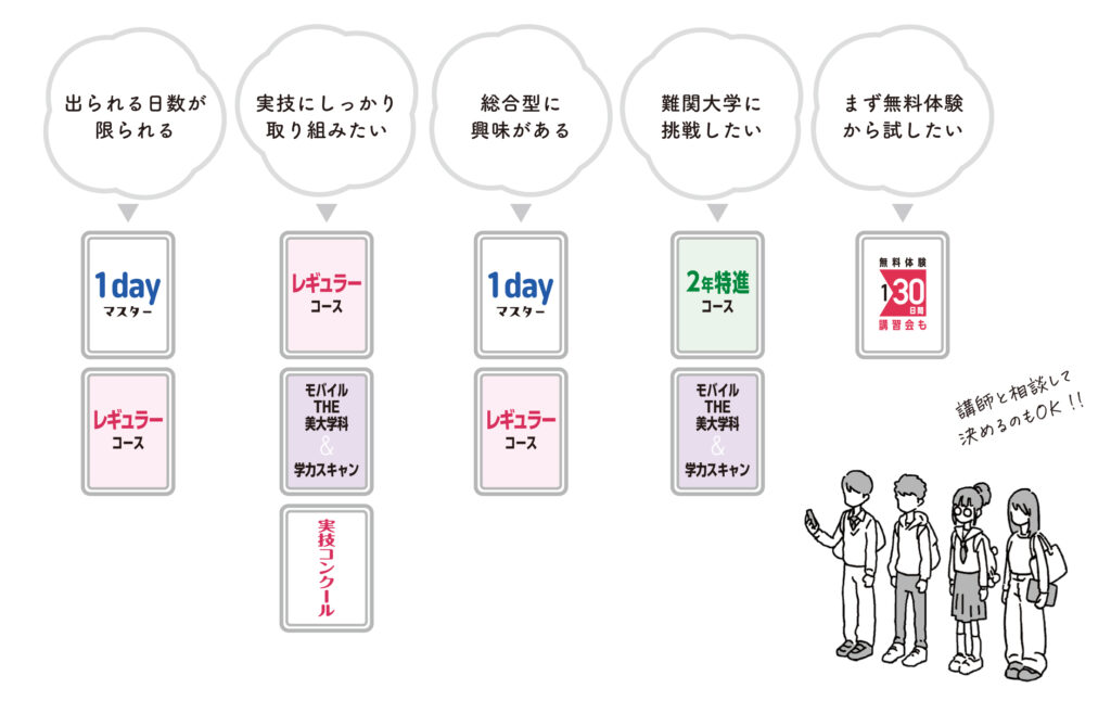 課題毎の受講が可能です。お気軽に担当講師にご相談ください。最適な受講プランをご提案いたします。