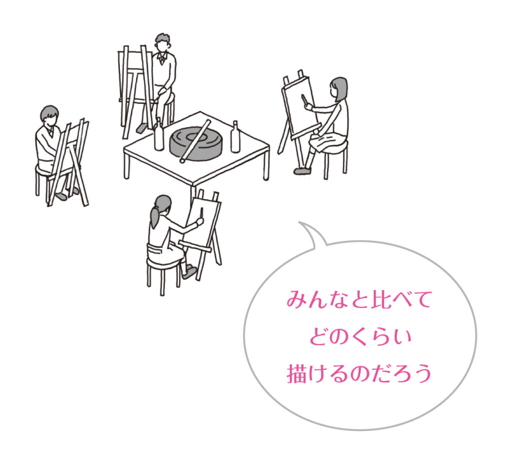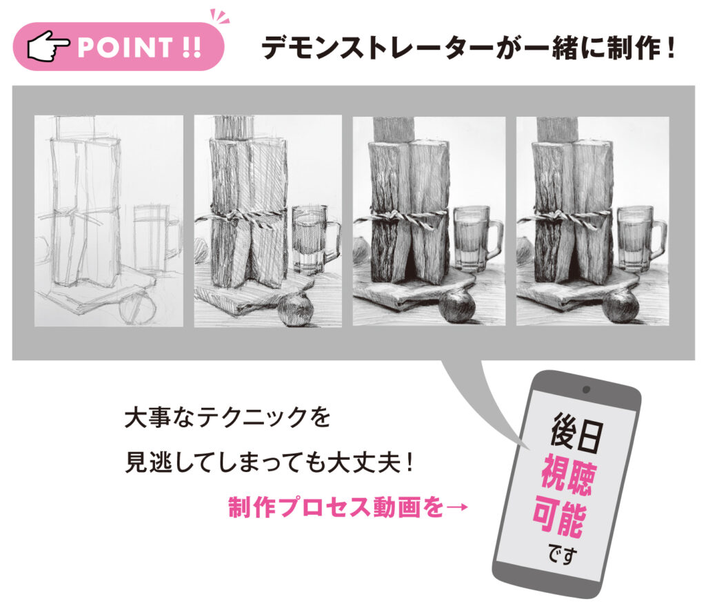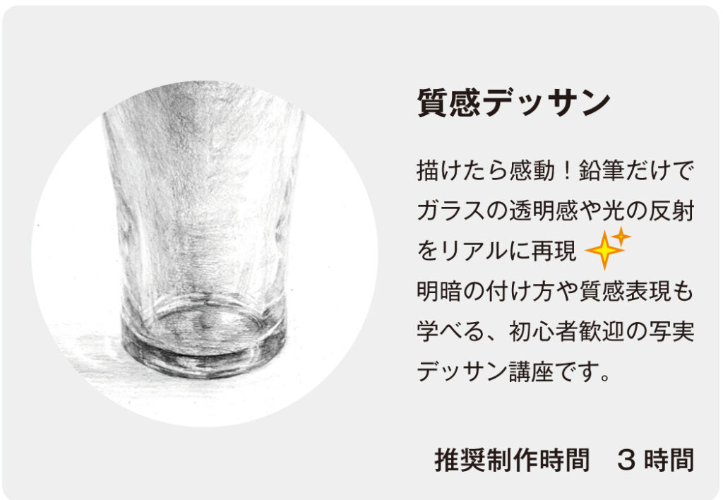 - 同じモチーフを鉛筆デッサンし、出来栄えを比べます。